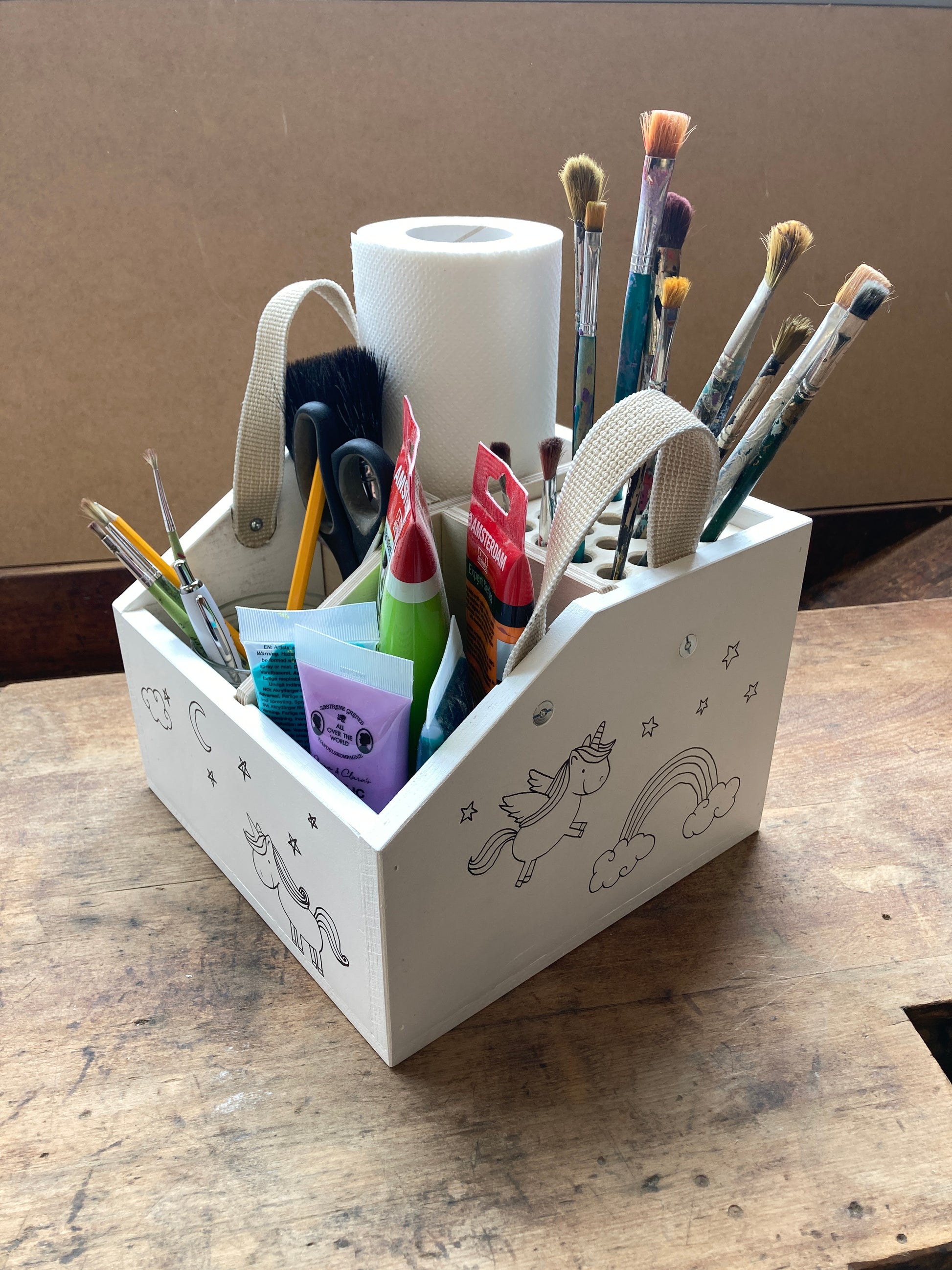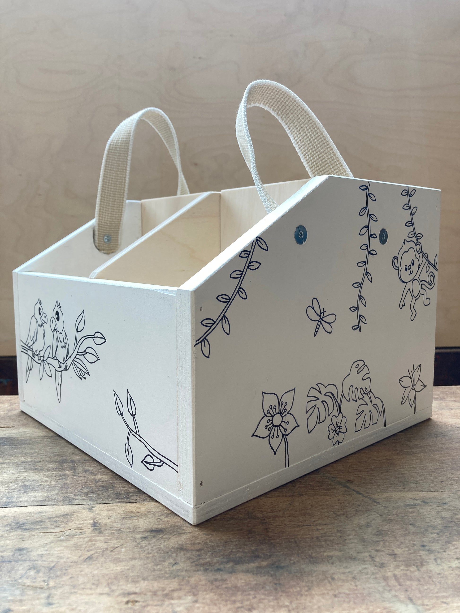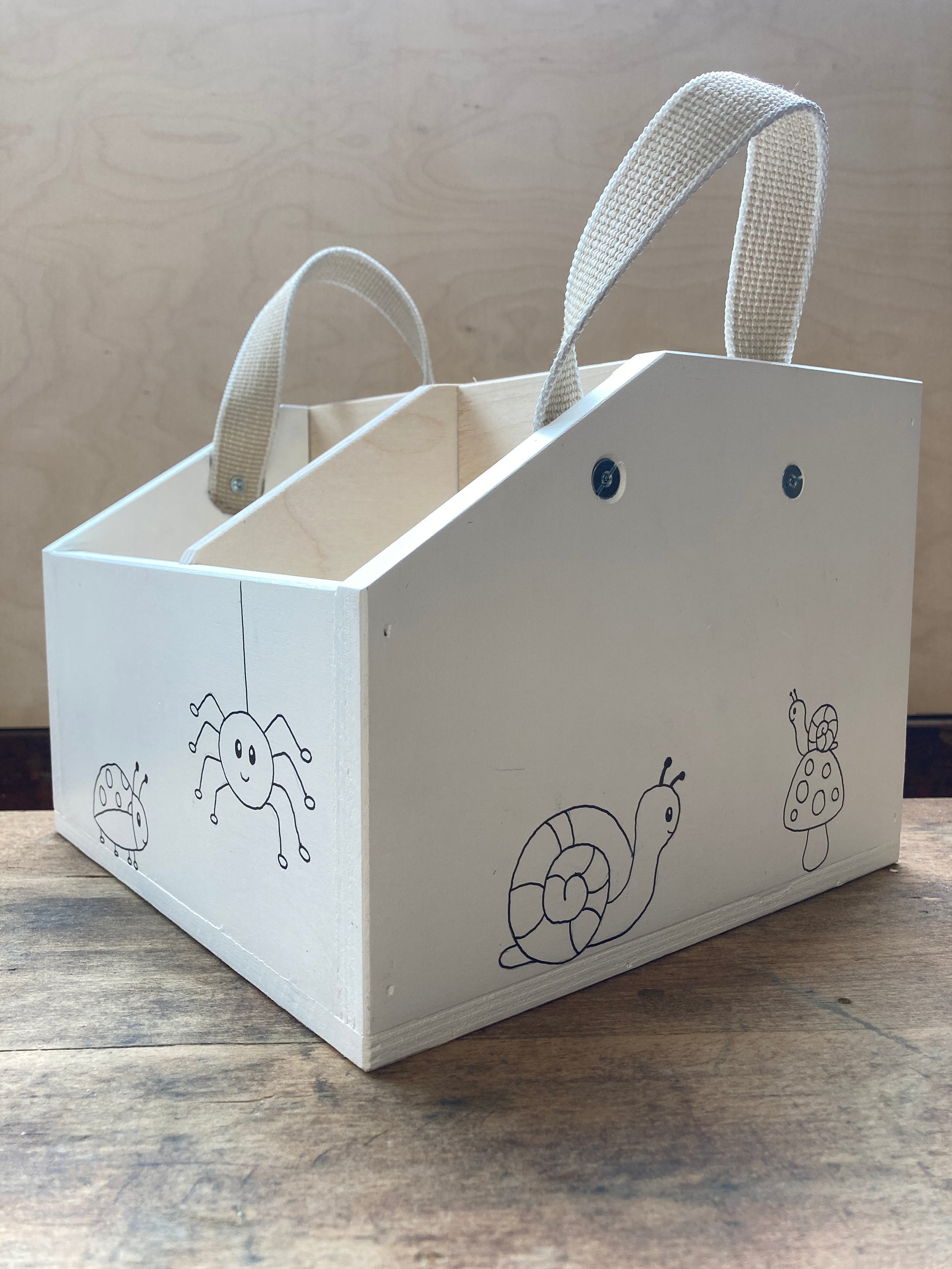 Dieser zauberhafte Malkasten aus Holz ist das perfekte Einzelstück für kleine Künstler! Mit seinen Massen von 16,8 x 22,5 x 22,5 cm bietet er ausreichend Platz zum Bemalen, kreative Stunden voller Spass und genügend Aufbewahrungsplatz für all deine Utensilien. Die praktische Pinselhalterung sorgt dafür, dass alle Pinsel griffbereit bleiben, während der Stoffhenkel den Transport kinderleicht macht. Ein bunter Begleiter, der Malspass spielerisch fördert!