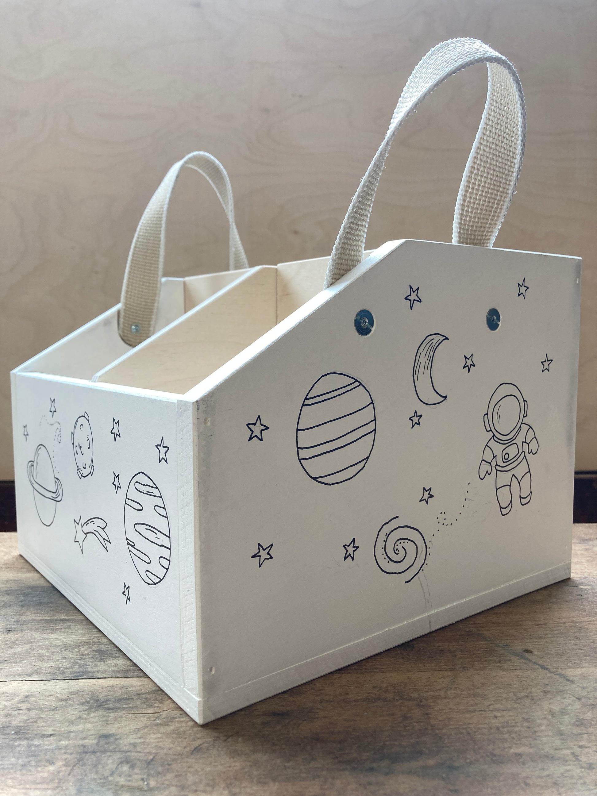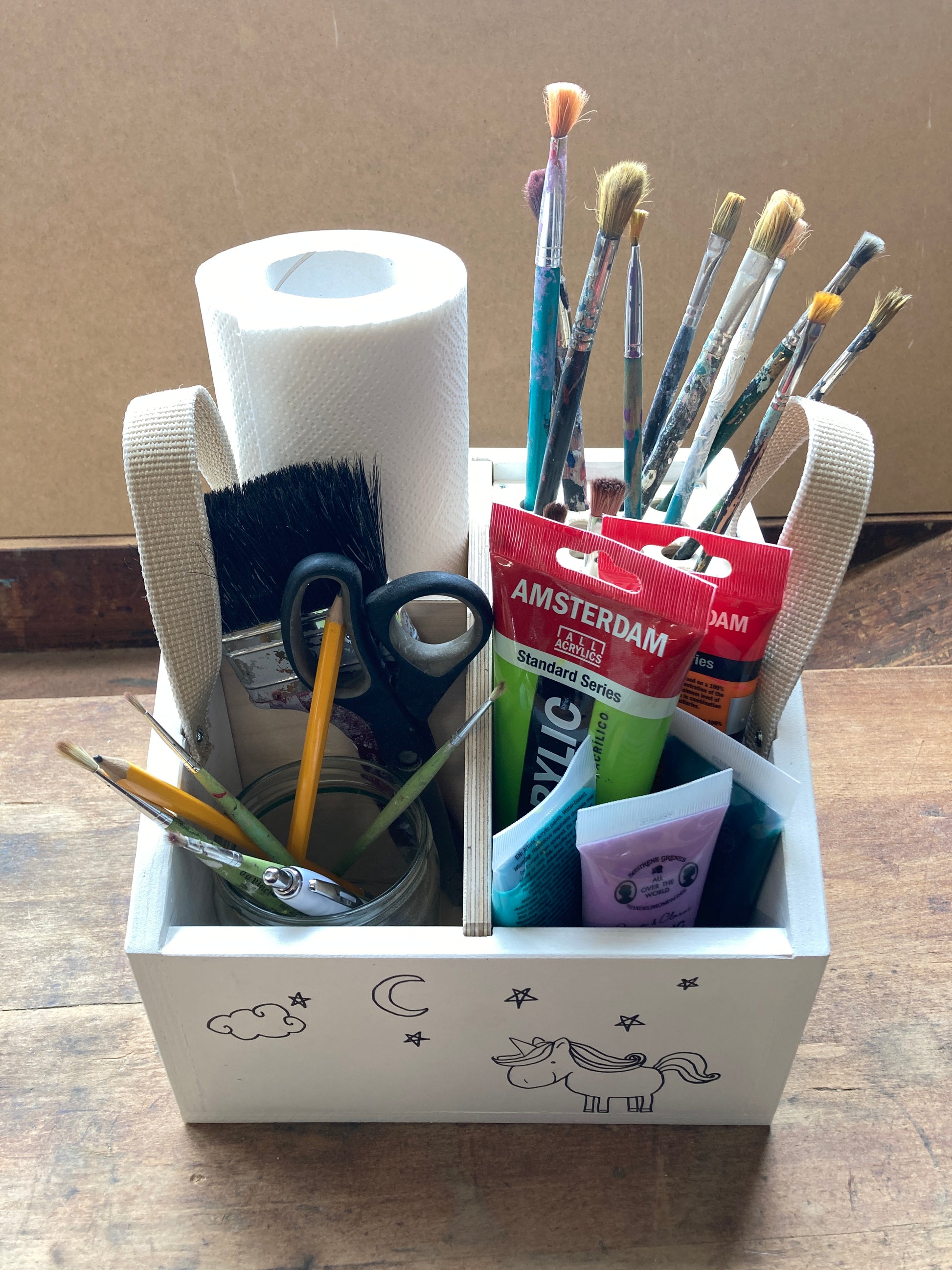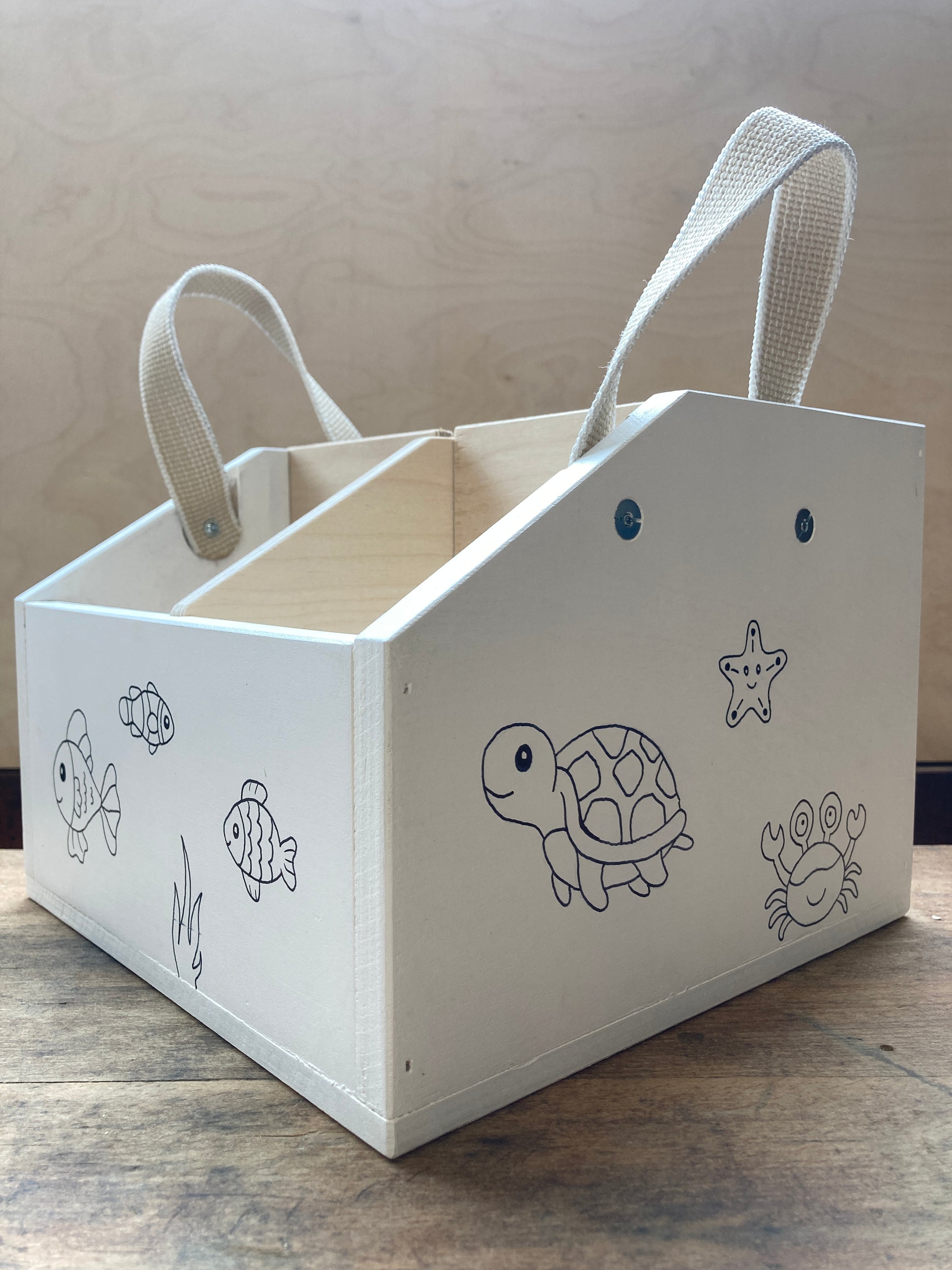 Dieser zauberhafte Malkasten aus Holz ist das perfekte Einzelstück für kleine Künstler! Mit seinen Massen von 16,8 x 22,5 x 22,5 cm bietet er ausreichend Platz zum Bemalen, kreative Stunden voller Spass und genügend Aufbewahrungsplatz für all deine Utensilien. Die praktische Pinselhalterung sorgt dafür, dass alle Pinsel griffbereit bleiben, während der Stoffhenkel den Transport kinderleicht macht. Ein bunter Begleiter, der Malspass spielerisch fördert!