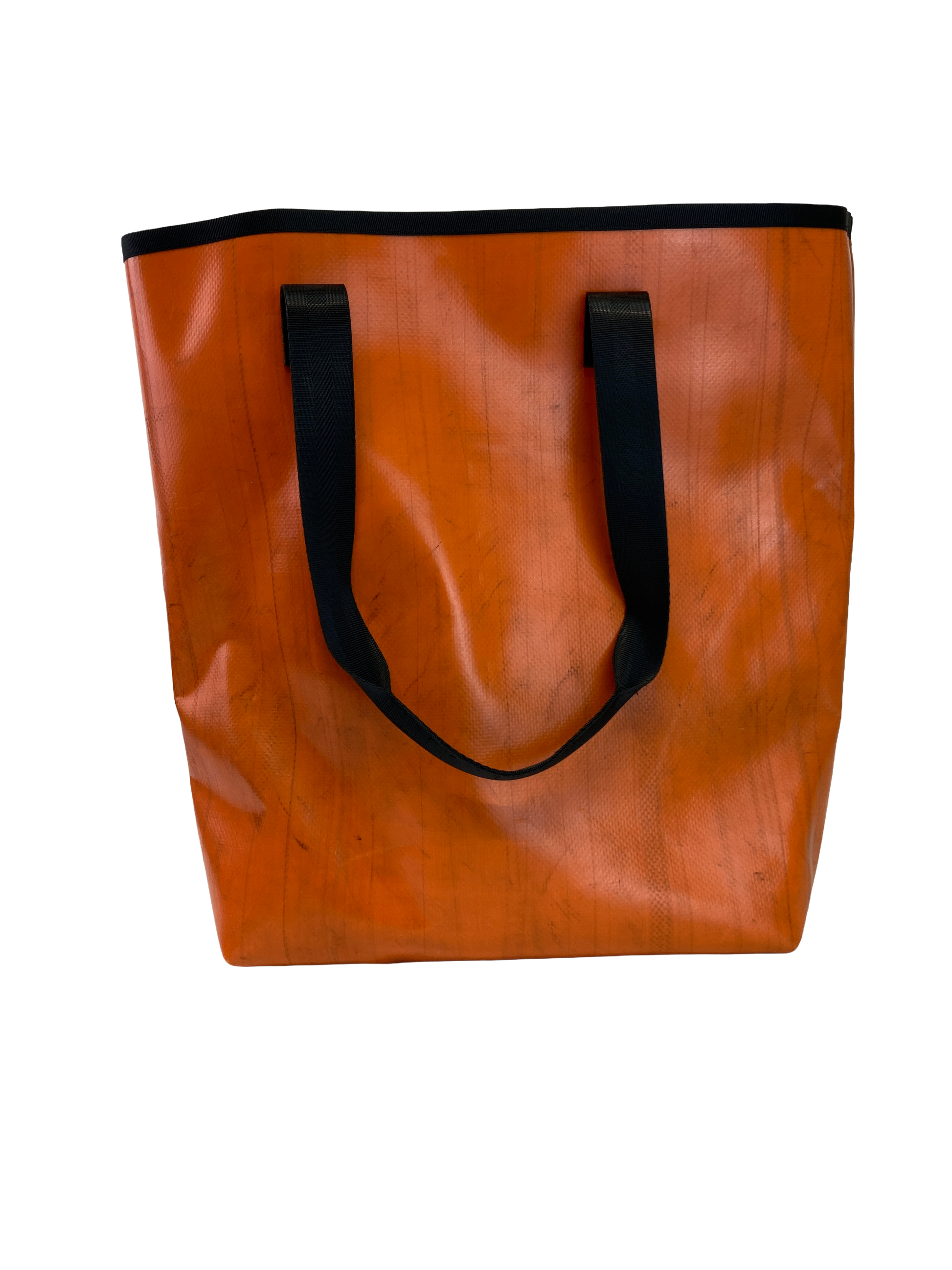 Materialien: Lastwagenplane, Autogurt für die Henkel
